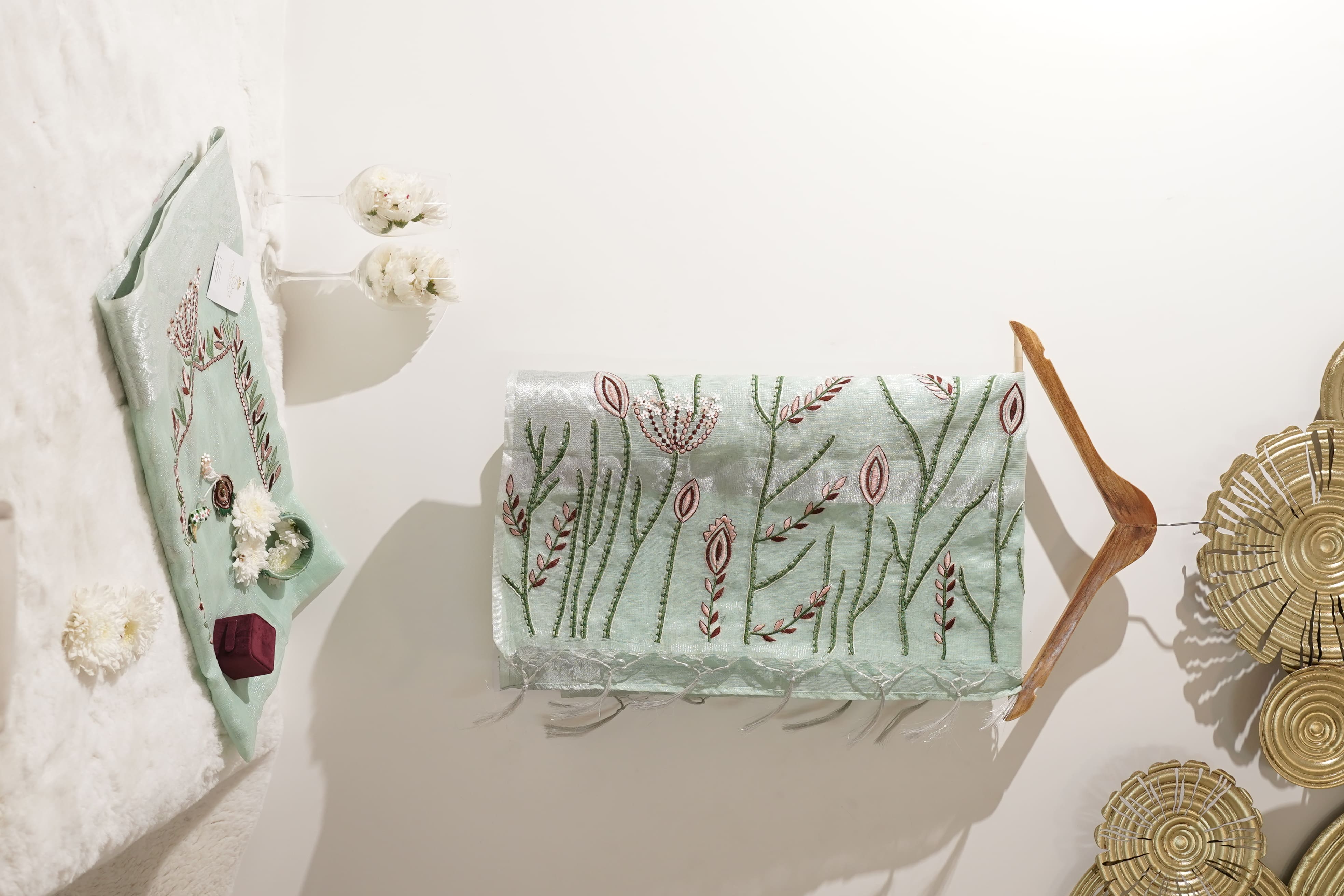 Certified organic cottons, traceable silks, and recycled trims.